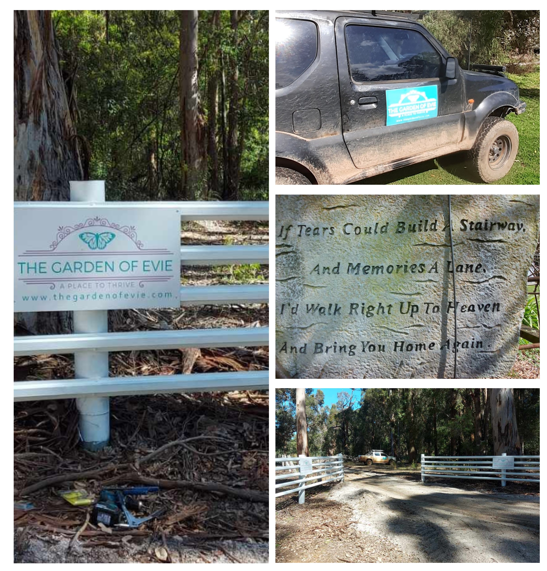 The Garden of Evie will be a not-for-profit organisation. The names of all donators will be published in our gallery, unless anonymity is requested. Those donations over $2000 will have the contributor’s name printed on a plaque and displayed in the sanctuary. All benefactors receive monthly newsletters with updates on the sanctuary development and events. All will be included in the growth from its more rudimentary stages through to fulfilment of our dreams.